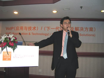 2005年5月19日下午,海狼科技的首席執(zhí)行官----Danny Lu博士,在長城飯店的蘭花廳舉辦了"X彩虹軟交換:下一代新電信的完整解決方案"專題演講會,吸引了眾多運營商及服務商參加,在演講會上,鹿博士闡述了VOIP在美國的發(fā)展與中國的發(fā)展趨勢。并詳盡介紹了"X彩虹軟交換"的完整商務功能及運營方案,并與參會者積極互動式交流,解答了眾多參會者的問題。