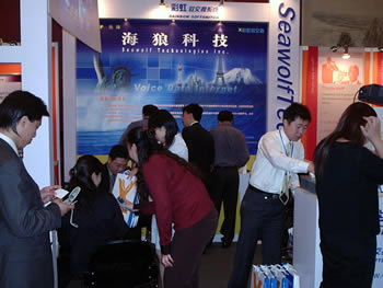 2005年5月18日在北京長城飯店召開的《2005中國IP語音網(wǎng)絡、軟交換及SIP研討會暨展覽會》上,海狼科技展臺前人頭攢動,很多商家對海浪科技技術(shù)和產(chǎn)品的表現(xiàn)感到相當滿意,并有新加坡、臺灣客戶現(xiàn)場購買產(chǎn)品。