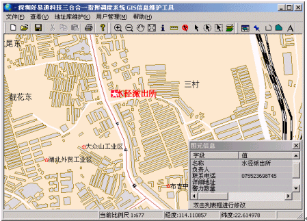 好易通三臺合一指揮調度警用地理信息子系統(tǒng)是好易通三臺合一指揮調度系統(tǒng)的一個重要組成部分,主要參考《警用地理信息系統(tǒng)建設規(guī)范》以及公安部《縣、市級公安機關"三臺合一"接處警系統(tǒng)技術規(guī)范》設計,基于MapInfo平臺開發(fā),接處警人員可運用該子系統(tǒng)對案發(fā)地點進行多中定位(模糊定位、輔助定位),多種查詢及多種調度。