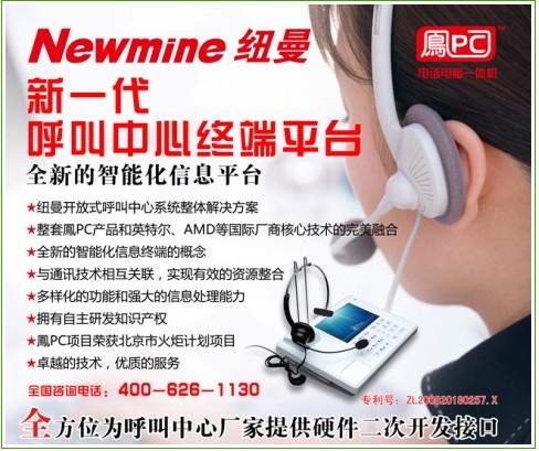 CTI論壇(ctiforum)4月28日消息(記者 張潔): 2011年4月12至13日,在五洲大酒店中國國際會(huì)議中心2011中國呼叫中心及企業(yè)通信大會(huì)(簡(jiǎn)稱CTI呼叫中心大會(huì))盛大召開,本屆展會(huì)展位近百個(gè),規(guī)模2000余平方米,吸引了國內(nèi)外行業(yè)觀眾數(shù)千人次參與,并將成為2011年度國內(nèi)及亞太地區(qū)規(guī)模最大的呼叫中心和企業(yè)通信展會(huì)。紐曼騰飛公司在本屆展會(huì)上推出包括智能商務(wù)電話,錄音系統(tǒng),鳳PC(電話電腦一體機(jī))等多種行業(yè)領(lǐng)先產(chǎn)品,吸引了大批行業(yè)內(nèi)人員及普通消費(fèi)者的關(guān)注。尤其鳳PC的推出更是本屆展會(huì)的一大亮點(diǎn)。