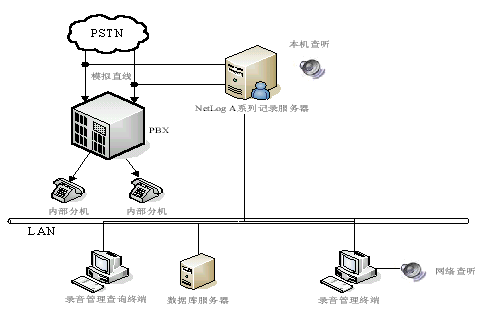 - NetLog可通過(guò)直線電話查詢、監(jiān)聽(tīng)某一通道的錄音,擺脫了數(shù)據(jù)網(wǎng)絡(luò)的限制,大大方便了管理人員的使用;