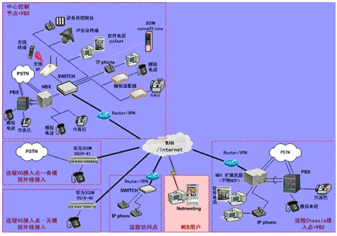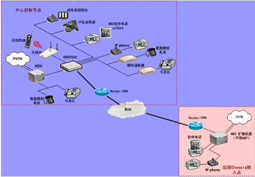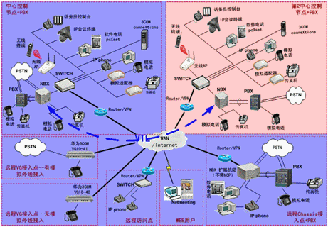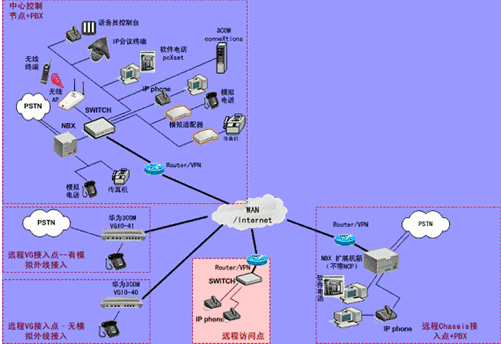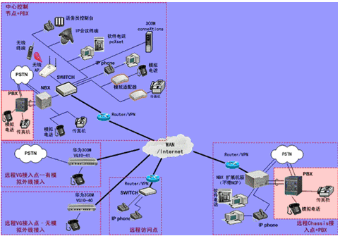 IPPBX將成為企業(yè)辦公不可缺少的一部分。此方案適合于已經(jīng)有PBX的公司,由于先期已經(jīng)投入了PBX設(shè)備,費(fèi)用昂貴,所以不會輕易被替換。在外地有多家分公司,使用傳統(tǒng)電話通訊費(fèi)用很高,希望能降低成本。并希望在分公司所在城市可以通過當(dāng)?shù)氐腜STN落地,節(jié)省長途費(fèi)用。依照客戶的需求,我們制定了以下方案: