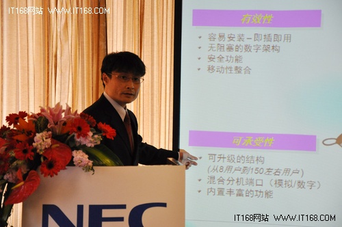 2011年3月28日,國(guó)際通信行業(yè)巨頭日本電氣株式會(huì)社(以下簡(jiǎn)稱NEC公司)在北京舉辦新品發(fā)布會(huì),宣布最新智能通訊服務(wù)器SL1000正式上市。發(fā)布會(huì)上,NEC公司IT網(wǎng)絡(luò)國(guó)際解決方案組平臺(tái)事業(yè)部副總裁橋沢太一郎先生闡述了對(duì)未來中國(guó)市場(chǎng)的市場(chǎng)策略和遠(yuǎn)景目標(biāo)。