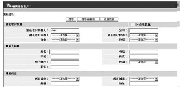 在使用中,我們也發(fā)現(xiàn),800CRM在某一界面中需要應(yīng)用的功能,往往需要進入另一個頁面中進行配置或維護,這就要求系統(tǒng)使用者必須對系統(tǒng)有一個清楚的了解。