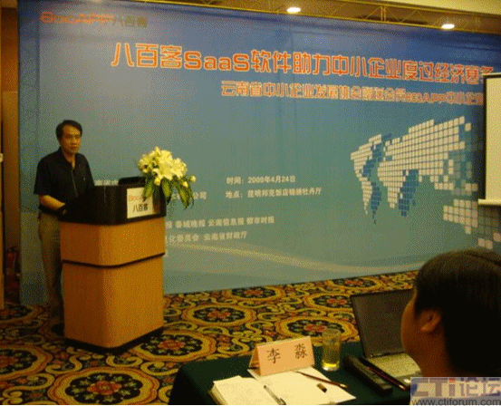 CTI論壇(ctiforum)05月07日消息: 4月24日下午,由云南省中小企業(yè)發(fā)展協(xié)會(huì)主辦、八百客(北京)軟件有限公司協(xié)辦的“八百客SaaS軟件助力中小企業(yè)度過(guò)經(jīng)濟(jì)寒冬——云南省中小企業(yè)發(fā)展協(xié)會(huì)贈(zèng)送會(huì)員800APP中小企業(yè)版活動(dòng)”在昆明邦克飯店隆重舉行。云南省中小企業(yè)發(fā)展協(xié)會(huì)秘書(shū)長(zhǎng)華松、八百客首席應(yīng)用專家高少義與來(lái)自云南省近100家的中小企業(yè)代表,共同探討了如何通過(guò)信息化建設(shè)方式來(lái)幫助中小企業(yè)獲得商業(yè)機(jī)會(huì),把握商機(jī),提高企業(yè)經(jīng)營(yíng)業(yè)績(jī)。