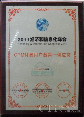作為全球企業(yè)管理軟件領(lǐng)跑者,八百客參加了此次會議,并就IT業(yè)戰(zhàn)略性發(fā)展、工業(yè)轉(zhuǎn)型升級等問題和與會企業(yè)家進(jìn)行了深入探討,集中、深刻闡釋產(chǎn)業(yè)精髓,洞悉和把握未來發(fā)展方向,尋求最佳的信息化成長模式。年會期間的招待晚宴穿插各類年度大獎的頒獎典禮,讓與會的政界、學(xué)界、商界等各路貴賓充分交流信息,建立友誼,為達(dá)成長期合作奠定良好的基礎(chǔ);诎税倏驮趪鴥(nèi)CRM領(lǐng)域的優(yōu)秀表現(xiàn),本次年會特別授予了八百客“CRM付費(fèi)用戶數(shù)第一供應(yīng)商”的大獎。