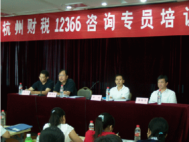 圖為杭州財(cái)稅12366咨詢專員培訓(xùn)班開(kāi)學(xué)典禮上杭州財(cái)稅局人事處領(lǐng)導(dǎo)講話