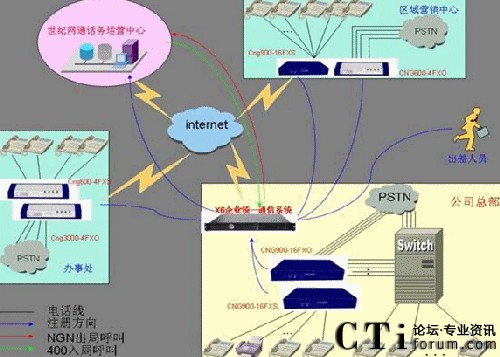 總部現在使用的為傳統(tǒng)PBX設備,配置為50路外線和200內線,分機為8前綴4位的分機號碼,如8001分機。32個的辦事處使用電信匯線通或直接的PSTN線路,2個的區(qū)域營銷中心使用匯線通或直接的PSTN線路,2個分公司使用的小型PBX?偛磕壳吧暾埩4條2M的ADSL線路做為一個集合,沒有固定的IP地址,各個分公司也多使用ADSL上網或電信的小區(qū)寬帶上網。