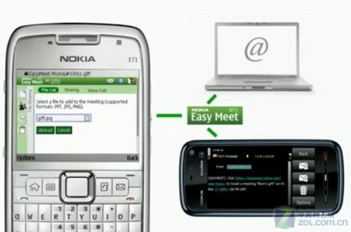 北京時間2009年4月16日,諾基亞發(fā)布Easy Meet,這是一款移動設(shè)備共享工具,可以實現(xiàn)移動設(shè)備與移動設(shè)備或PC之間的實時共享,并且所有的共享并不需要另外下載軟件,僅用手機自帶的瀏覽器就可實現(xiàn),非常方便。用戶僅需正確的輸入Easy Meet的地址鏈接,就可成功的創(chuàng)建連接,并向每位連接人發(fā)送電子郵件或者SMS,僅需一鍵確認,每位參與人就可通過Easy Meet查看共享文件,參與互動或者直接使用別的設(shè)備上的內(nèi)容。