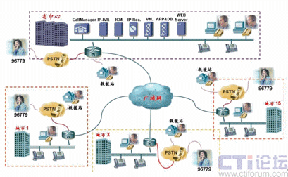 如上圖所示,由于Cisco IPCC是基于標準IP網(wǎng)絡的純IP呼叫中心解決方案,呼叫中心的核心設備都只部署在省中心機房,其它地市只需要在原有網(wǎng)絡的路由器上添加語音模塊即可實現(xiàn)PSTN語音的本地接入,而無需再各地市購買額外的接入設備。而同樣由于IP網(wǎng)絡的特性,呼叫中心的坐席可以根據(jù)需要部署在甘肅省運輸管理局IP網(wǎng)絡可達的任何一個地方,各地市的坐席只需要配備IP電話和座席PC即可。來自PSTN的電話根據(jù)用戶在IVR中的選擇和其它路由策略,自動分配到最適合的坐席處理,譬如來自白銀的運政投訴由白銀市本地的運政大廳座席人員處理。
