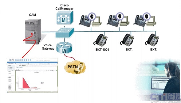 通過(guò)與Cisco 統(tǒng)一通信管理器(Cisco Communcation Manager)的無(wú)縫整合,CAM可以為企業(yè)提供相關(guān)語(yǔ)音通信的話務(wù)統(tǒng)計(jì)、呼叫計(jì)費(fèi)、流量分析等功能。通過(guò)簡(jiǎn)單的報(bào)表生成使用戶可以方便、及時(shí)的對(duì)整個(gè)企業(yè)的通訊情況進(jìn)行分析,從而有效的對(duì)通訊資源進(jìn)行管理、控制并防止通信資源浪費(fèi)。