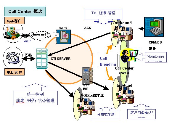 CallCenter系列CTI中間件產(chǎn)品包括:ACD智能路由分配;IVR多媒體語(yǔ)音交互應(yīng)答;IVRBuilder業(yè)務(wù)生成解釋子系統(tǒng);CallManager統(tǒng)一控制臺(tái);CMS系統(tǒng)實(shí)時(shí)監(jiān)控;管理者統(tǒng)計(jì)報(bào)表系統(tǒng);ACS計(jì)劃呼叫管理;RecordManager全程錄音管理;SoftPhone座席應(yīng)用工具;VOIP遠(yuǎn)端座席;WEB呼叫服務(wù);CRM集成開發(fā)平臺(tái)。