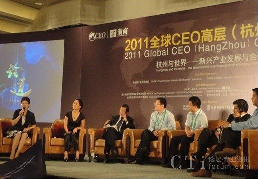 CTI論壇(ctiforum)9月21日消息(記者 張潔):9月13日下午,2011全球CEO高層(杭州)論壇在凱悅大酒店舉行。本次論壇由聯(lián)合國工業(yè)發(fā)展組織,杭州市人民政府主辦,論壇以“杭州與世界:新興產業(yè)發(fā)展與合作”為主題,圍繞浙江企業(yè)在新興產業(yè)轉型創(chuàng)新過程中的關注點即新興產業(yè)技術分享、商業(yè)模式探討以及融資渠道開拓等三方面,攜手幾十位位國內外著名CEO共同探討解決之道,并借助會議的延展尋求可行之道。