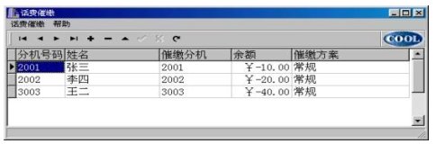 催繳調(diào)度表中的%欠費(fèi)%,用戶可以從計(jì)費(fèi)系統(tǒng)的月報(bào)表中提出(用戶輸入月份,自動根據(jù)催繳電話取過來);也可由用戶再次修改(針對所欠不是一個月的費(fèi)用),但“刷新”又從從計(jì)費(fèi)系統(tǒng)的月報(bào)表中更新數(shù)據(jù)。