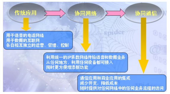 網絡技術的日趨完善和商業(yè)社會對網絡的依賴,網絡已經成為整個商業(yè)社會前進的核心動力,每一個微小的進步都或多或少地與基于IP的技術運用有關。網絡將相互獨立的計算機組合起來協同工作,已經創(chuàng)造出原來不可以想象的價值。今天,以整合各種通信手段和工具為特點的“協同通信”,已經成為一個廣為人知的理念,人們也期待通過“協同通信”超越傳統(tǒng)的通信邊界,實現簡便、快捷、準確而無處不在的通信。