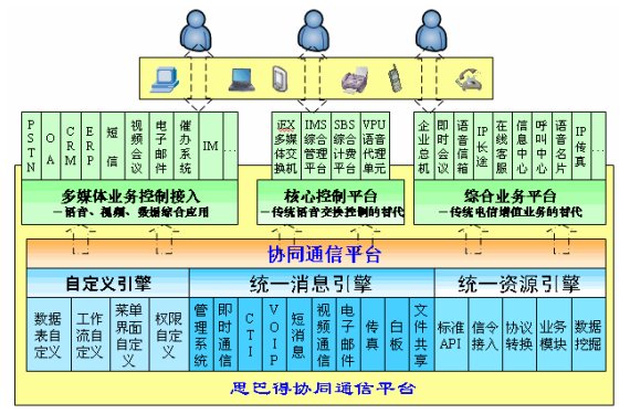 思巴得信息協同通信平臺是國內唯一的將協同技術引入通信及辦公應用的平臺;實現電信級通訊工具與互聯網數據應用的協同;實現語音、視頻、數據三合一的綜合應用,語音、圖像、數據統(tǒng)一處理的協同平臺