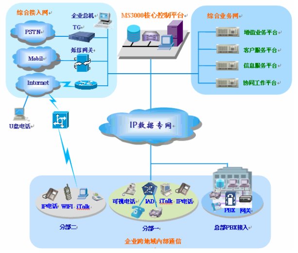 多功能的內部通信業(yè)務(視頻、WiFi無線、軟電話漫游、即時通信、語音信箱、多方通話等)