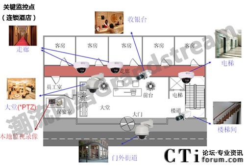 采用潮流網(wǎng)絡(luò)提供的網(wǎng)絡(luò)監(jiān)控平臺(tái)來(lái)加強(qiáng)管理和提高各個(gè)門市的服務(wù)質(zhì)量。由于是連鎖酒店,所以高層主管無(wú)法時(shí)時(shí)刻刻在各個(gè)酒店內(nèi)管理,讓高層對(duì)于酒店內(nèi)的營(yíng)運(yùn)管理十分頭痛,所以當(dāng)主管在裝設(shè)監(jiān)控系統(tǒng)時(shí)要求希望達(dá)到透過Internet的集中監(jiān)控、分散管理,監(jiān)控中心的操作平臺(tái)方面希望能使用人性化的界面簡(jiǎn)單不繁瑣。潮流網(wǎng)絡(luò)的監(jiān)控系統(tǒng)可展開樹狀目錄進(jìn)行不同地域的階層式管理,高層主管可透過網(wǎng)絡(luò)進(jìn)行“跨地域、跨網(wǎng)域”的實(shí)時(shí)監(jiān)看,隨時(shí)可掌控酒店內(nèi)的營(yíng)運(yùn)狀況,無(wú)需再親自到酒店。