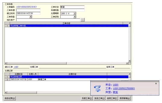 系統(tǒng)能通過(guò)接口的擴(kuò)展可以處理來(lái)自包括FAX、SMS、 E_mail等其它來(lái)源的業(yè)務(wù),并能通過(guò)FAX、 E_mail等形式流轉(zhuǎn)工單。