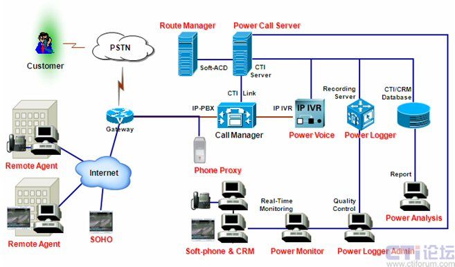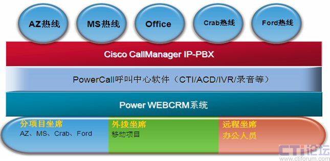 系統(tǒng)采用CISCO CallManager IP-PBX作為語音平臺(tái),PCS提供全套軟件,包括:CTI、排隊(duì)、IP-IVR、錄音和CRM,對(duì)MicroCall外包呼叫中心的各項(xiàng)需求都給出了滿意的解決方案。