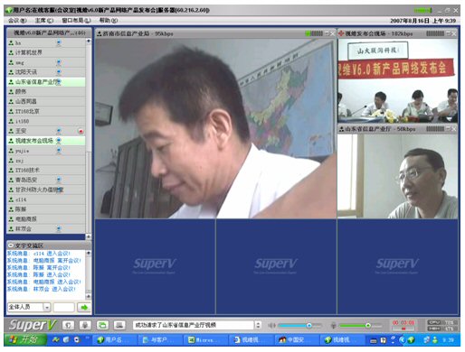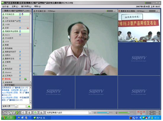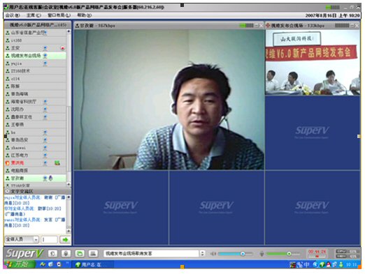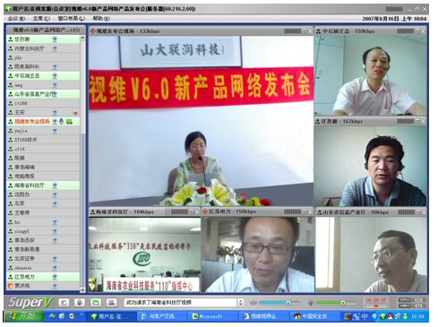 2007年8月16日,視維視頻會議V6.0新產(chǎn)品網(wǎng)絡(luò)發(fā)布會在美麗的泉城濟(jì)南舉行,山東省信息產(chǎn)業(yè)廳、濟(jì)南市信息產(chǎn)業(yè)局的領(lǐng)導(dǎo)、山東省電信等上級主管部門領(lǐng)導(dǎo),視維產(chǎn)品新老用戶和有視頻會議需求的潛在客戶,國內(nèi)外合作伙伴,IT168、中國計算機報、電腦商報、C114、支點網(wǎng)、計算機世界、CTI論壇、投影時代等國內(nèi)知名媒體100多人參加了這次網(wǎng)絡(luò)發(fā)布會。在此次會議上,山大聯(lián)潤公司通過視頻會議與各地與會者進(jìn)行了良好的溝通,同時這次發(fā)布會開創(chuàng)了用視頻會議發(fā)布新產(chǎn)品的先河。
