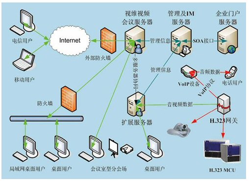 視維系統(tǒng)是一個基于IP網(wǎng)絡(luò)的綜合業(yè)務(wù)通訊平臺,通過多網(wǎng)絡(luò)接入方式實現(xiàn)網(wǎng)通、電信、聯(lián)通等用戶間高速互通;通過H.323模塊將企業(yè)內(nèi)部原有的硬件設(shè)備與視維系統(tǒng)鏈接起來,有效的節(jié)約了投資;其他如SIP模塊,短信模塊,固網(wǎng)電話接入等都可以根據(jù)用戶需要進(jìn)行擴展。視維系統(tǒng)可以支持分布式視頻服務(wù)器集群,可利用企業(yè)內(nèi)部網(wǎng)絡(luò)或者互聯(lián)網(wǎng)構(gòu)建超大規(guī)模企業(yè)綜合通訊平臺;凇懊嫦蚍⻊(wù)體系架構(gòu)(SOA)”設(shè)計架構(gòu),實現(xiàn)很靈活地方便地與其業(yè)務(wù)系統(tǒng)如OA,HR,CRM,