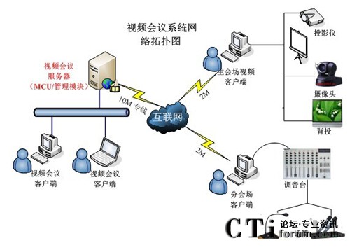 根據(jù)河南送變電建設(shè)公司的網(wǎng)絡(luò)現(xiàn)狀和現(xiàn)有的IT硬件資源以及各級各部門間的溝通協(xié)作需要,視維設(shè)計(jì)了一套可行的視頻會(huì)議系統(tǒng)解決方案,其網(wǎng)絡(luò)拓?fù)鋱D如下:
