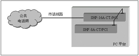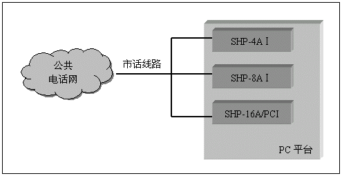 單純的語(yǔ)音系統(tǒng)(不需要座席,傳真等附加功能),可以采用SHP-4A、SHP-8A和SHP-16A系列的模擬線(xiàn)語(yǔ)音卡來(lái)構(gòu)成,并且不需要連接卡間交換總線(xiàn),這類(lèi)系統(tǒng)如證券電話(huà)委托系統(tǒng),語(yǔ)音信箱留言系統(tǒng),銀行稅務(wù)查詢(xún)催繳系統(tǒng)等,其典型系統(tǒng)結(jié)構(gòu)如下: