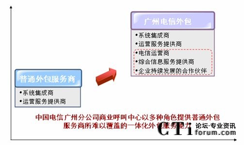 成立于1999年的中國(guó)電信廣州分公司商業(yè)呼叫中心作為中國(guó)外包呼叫中心市場(chǎng)中的領(lǐng)先者,一直以其雄厚的實(shí)力、專業(yè)的服務(wù)和豐富的經(jīng)驗(yàn)受到客戶和業(yè)界的矚目。分析其成功的原因,我們認(rèn)為主要源于三個(gè)方面:首先是其自身集呼叫中心建設(shè)系統(tǒng)集成商、呼叫中心運(yùn)營(yíng)服務(wù)提供商、電信運(yùn)營(yíng)商、綜合信息服務(wù)提供商、企業(yè)持續(xù)發(fā)展的合作伙伴于一身所帶來(lái)的差異化優(yōu)勢(shì)以及一體化服務(wù)模式,這是國(guó)內(nèi)眾多外包呼叫中心服務(wù)商所難以企及的優(yōu)勢(shì);其次是經(jīng)過(guò)多年積累形成的豐富運(yùn)營(yíng)經(jīng)驗(yàn)和領(lǐng)先管理運(yùn)營(yíng)實(shí)踐;其三是和華為公司密切合作所形成的強(qiáng)大技術(shù)實(shí)力。