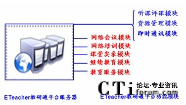 紅杉樹的“教研通”產(chǎn)品是紅杉樹根據(jù)客戶的具體情況,在自身產(chǎn)品“紅杉通”的基礎(chǔ)上,定制擴(kuò)展而來,是一套適合于教育城域網(wǎng)的,集即時(shí)通訊、網(wǎng)絡(luò)會(huì)議、網(wǎng)絡(luò)培訓(xùn)、課堂實(shí)錄、聽課評課、資源管理、繼續(xù)教育、教育服務(wù)等功能于一體的綜合性教育應(yīng)用系統(tǒng)(包括服務(wù)器及軟件平臺(tái))。