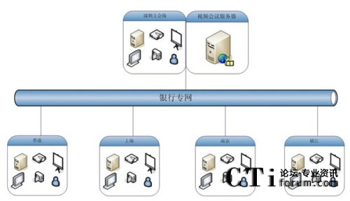 如圖,大新銀行視頻會議系統(tǒng)應(yīng)用規(guī)模為5個(gè)點(diǎn),包括香港、深圳、上海、南京、鎮(zhèn)江,服務(wù)器部署在深圳用來保證香港和內(nèi)地的鏈接效果,服務(wù)器出口帶寬為5M共享,各分會場通過專網(wǎng)訪問服務(wù)器。在這個(gè)網(wǎng)絡(luò)平臺上,紅杉樹網(wǎng)絡(luò)視頻會議所提供的高質(zhì)量音視頻圖像、方便易用的文檔、文件共享數(shù)據(jù)功能,使得大新銀行能夠在這個(gè)平臺上進(jìn)行從桌面討論到會議室正式會議等各種規(guī)模的應(yīng)用。在這個(gè)平臺上,除了進(jìn)行日常例會、業(yè)務(wù)交流等常見的應(yīng)用之外,業(yè)務(wù)培訓(xùn)、異地招聘等也是經(jīng)常進(jìn)行的內(nèi)容。業(yè)務(wù)人員利用數(shù)據(jù)功能,把平常培訓(xùn)很難懂的新銀行產(chǎn)品、費(fèi)率等進(jìn)行介紹,節(jié)約了以前培訓(xùn)所花費(fèi)的大量精力和時(shí)間,為新產(chǎn)品迅速占領(lǐng)市場掌握了主動。