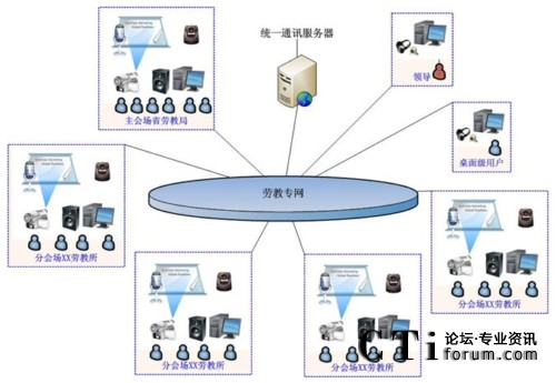 湖南省勞教局是司法廳管理的從事管理、教育、改造勞動教養(yǎng)人員的行政機構(gòu),也是省勞動教養(yǎng)管理委員會的常設(shè)辦事機構(gòu)。其下屬管理有20多個下屬機構(gòu),分布于湖南省各個地市縣,以前進行全局會議時,所有的人員都需要到長沙市來進行開會,管理起來很不方便,同時差旅成本也比較高,同時局里經(jīng)常需要對下面的工作人員進行業(yè)務方面的培訓,F(xiàn)客戶需要在他們的勞教專網(wǎng)上部署一套視頻會議系統(tǒng)來進行管理和培訓。
