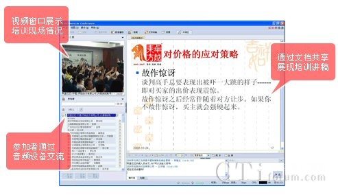 高清晰的視頻,可以讓網(wǎng)絡(luò)培訓(xùn)用戶感受培訓(xùn)現(xiàn)場(chǎng)氣氛。文檔共享和音頻可以讓用戶感受培訓(xùn)人員的聲情并茂。同時(shí)用戶可以在網(wǎng)絡(luò)培訓(xùn)系統(tǒng)的答疑區(qū)提出自己的問(wèn)題,和培訓(xùn)人員進(jìn)行互動(dòng)。