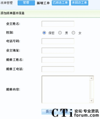 新增加派單:當(dāng)服務(wù)人員接到客戶投訴后,確定客戶有此需求,就可以通過工單來派發(fā)任務(wù)(具體界面如下圖):