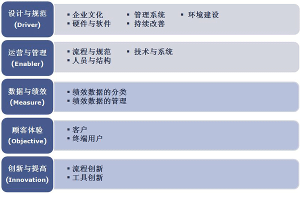 呼叫中心能力成熟度認(rèn)證涉及設(shè)計(jì)與規(guī)范、運(yùn)營與管理、數(shù)據(jù)與績效、顧客體驗(yàn)、創(chuàng)新與提高5大類,14項(xiàng)評審指標(biāo)以及若干個值得關(guān)注的管理項(xiàng)目。是一套完整的“客戶為中心”的績效管理工具。