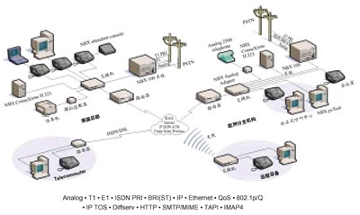 只需要簡單地將NBX 100系統(tǒng)和計(jì)算機(jī)接入以太局域網(wǎng),就可以構(gòu)成一個(gè)簡單而統(tǒng)一的網(wǎng)絡(luò)體系。