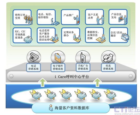 依托先進(jìn)CTI技術(shù),基于現(xiàn)代服務(wù)營(yíng)銷(xiāo)理念,系統(tǒng)實(shí)現(xiàn)銷(xiāo)售線索挖掘、電話銷(xiāo)售跟蹤、銷(xiāo)售機(jī)會(huì)孵化、市場(chǎng)機(jī)會(huì)勘察、B2B/B2C市場(chǎng)調(diào)查、會(huì)議邀請(qǐng)、客戶(hù)關(guān)系改善、定期業(yè)務(wù)催辦等多種電話營(yíng)銷(xiāo)服務(wù)。