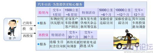 根據詳細的客戶或交易信息(如生日、性別、愛好、購車記錄、投保記錄等)主動與客戶通過電話、短信等方式,進行客戶回訪、投保到期再保提醒、生日祝福、節(jié)日問候、再保后的關懷等服務,與客戶建立良好的長期關系。