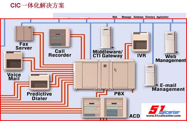 我給我們的產(chǎn)品做一個(gè)定位,就是一體化解決方案的呼叫中心。傳統(tǒng)的基于PBX的呼叫中心解決方案,我們把中間的這一塊放大,有傳真系統(tǒng)、語(yǔ)音信箱、IVR、Recorder記錄系統(tǒng)、還有預(yù)測(cè)外呼系統(tǒng)。每個(gè)系統(tǒng),都是獨(dú)立的,而且需要自己的服務(wù)器、自己的應(yīng)用軟件以及業(yè)務(wù)模式。我們的CIC解決方案,把這些所有的功能全部濃縮在一個(gè)服務(wù)器之內(nèi),也可以把它濃縮在一個(gè)Webex內(nèi),一個(gè)盒子之內(nèi),這個(gè)盒子就是我們的CIC。