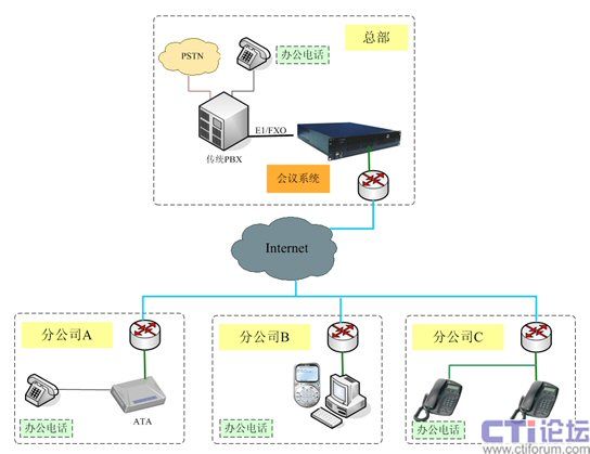 圖注:捷思銳電話會議系統(tǒng)示意圖