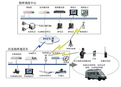相對,應(yīng)急指揮車配有車載Wi-Fi基站,接入園區(qū)內(nèi)鋪設(shè)的無線寬帶網(wǎng)絡(luò),在園區(qū)無線寬帶覆蓋范圍內(nèi)實(shí)現(xiàn)與指揮中心的語音、視頻、數(shù)據(jù)的雙向傳輸。當(dāng)Wi-Fi mesh網(wǎng)絡(luò)無信號覆蓋,指揮車還可通過2G\3G、無線集群等方式與指揮中心進(jìn)行多網(wǎng)融合語音通信。