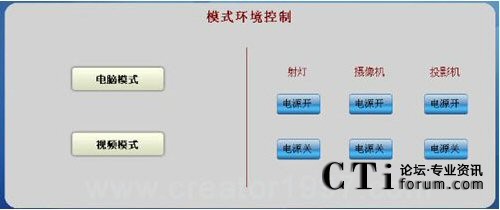 在業(yè)務(wù)不斷攀升的同時(shí),廣東移動(dòng)公司對(duì)培訓(xùn)直播室也進(jìn)行了進(jìn)一步的提升,采用了CREATOR快捷的中控系統(tǒng)和矩陣系列產(chǎn)品,其中,中控設(shè)備是CREATOR快捷PGMII型高端中央控制可編程主機(jī),通過(guò)無(wú)線真彩觸摸屏ST-7600C作為控制媒介,主要控制了矩陣、投影機(jī)、DVD、攝像機(jī)等外圍設(shè)備,對(duì)整個(gè)會(huì)議室實(shí)現(xiàn)有線全智能人性化控制。通過(guò)對(duì)矩陣進(jìn)行控制切換信道,實(shí)現(xiàn)了多個(gè)電腦會(huì)議信號(hào)的快速轉(zhuǎn)換和AV信號(hào)的切換。矩陣采用了8*4的RGB矩陣和8*4的AV矩陣,可以方便的對(duì)電腦信號(hào)和AV信號(hào)進(jìn)行簡(jiǎn)單的切換。通過(guò)紅外發(fā)射棒對(duì)DVD和攝像機(jī)進(jìn)行控制,體現(xiàn)了多媒體控制系統(tǒng)的優(yōu)越性,本系統(tǒng)還通過(guò)攝像跟蹤的原理來(lái)實(shí)現(xiàn)教室直播的錄制。