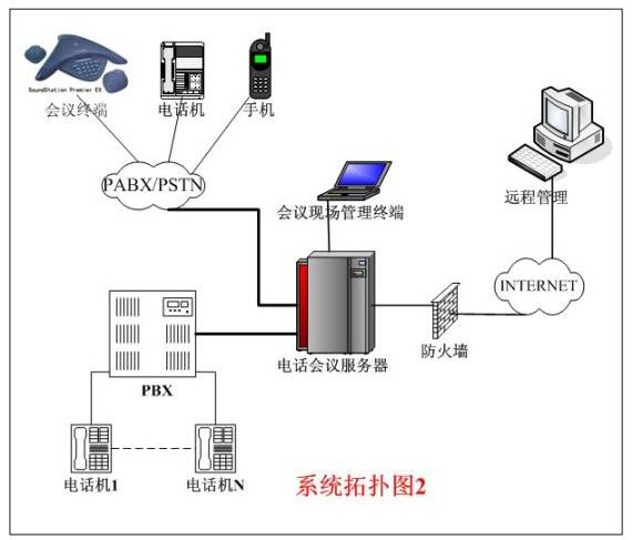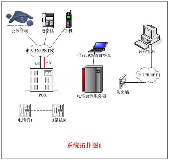 整個(gè)系統(tǒng)的拓?fù)浣Y(jié)構(gòu)一般有以上兩種連接方式,拓?fù)浣Y(jié)構(gòu)如上圖所示。圖1中的用戶交換機(jī)直接和公網(wǎng)PSTN或電信交換機(jī)相連。異地與會(huì)者必須先進(jìn)入用戶交換機(jī)后,再進(jìn)入電話會(huì)議主機(jī)。圖2中的連接方式是把電話會(huì)議系統(tǒng)主機(jī)直接和公網(wǎng)PSTN或電信交換機(jī)相連,異地與會(huì)者直接通過(guò)公網(wǎng)進(jìn)入電話會(huì)議主機(jī)。