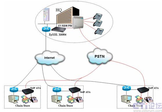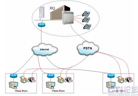 通過這種架構,各連鎖分店的話機與總部內部話機之間的聯系便可以透過IP網絡進行,無須再支付任何長途通話費用。