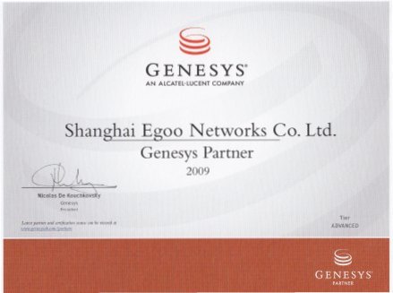 上海易谷與Genesys公司雙方在2009年達(dá)成大中華區(qū)長期合作伙伴關(guān)系,開展廣泛、深入的合作。上海易谷將憑借其深厚的技術(shù)背景、優(yōu)質(zhì)的服務(wù)能力,積極推動世界第一的CTI及SIP新一代呼叫中心基礎(chǔ)平臺。為配合產(chǎn)品多樣化、專業(yè)服務(wù)的發(fā)展戰(zhàn)略,與