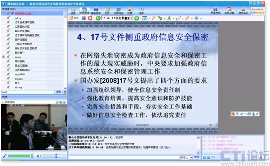 CTI論壇(ctiforum)05月07日消息: 4月8日-9日國家稅務(wù)總局組織全國省國稅地稅局IT主任與解放軍總參三院、中國信息安全評(píng)測(cè)中心、神州網(wǎng)御70多人在濟(jì)南錦繡山莊以及全國各地國稅地稅相關(guān)人員200多人使用自己辦公室的電腦通過盛維(Cenwave)新世紀(jì)提供的網(wǎng)絡(luò)視頻直播系統(tǒng)召開“國家稅務(wù)系統(tǒng)信息安全風(fēng)險(xiǎn)評(píng)估啟動(dòng)會(huì)”。此次會(huì)議是國家稅務(wù)總局首次租用網(wǎng)絡(luò)視頻會(huì)議直播系統(tǒng)召開全國性會(huì)議也是參會(huì)人數(shù)最多的一次,不僅打破地點(diǎn)人數(shù)的限制、克服了硬件設(shè)備的局限、節(jié)省行政成本,也是建設(shè)“兩型社會(huì)”的具體體現(xiàn)。