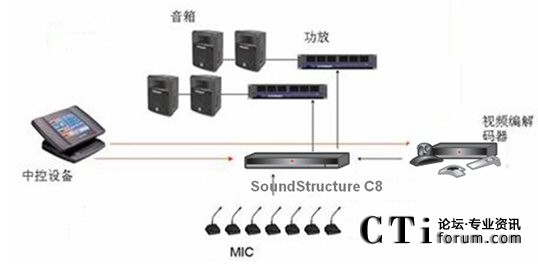 根據(jù)用戶的需求,結(jié)合用戶會議室現(xiàn)有的設(shè)備,我們選用寶利通具有獨(dú)特聲音處理技術(shù)的音頻處理平臺——SoundStructureC8。SoundStructureC8連接本地麥克風(fēng)和功放系統(tǒng),通過反饋聲抑制的功能來消除本地?cái)U(kuò)聲導(dǎo)致的嘯叫,保證會議室的聲音效果。C8聲音處理系統(tǒng)還可以和視頻會議以及電話會議一起使用,解決遠(yuǎn)程會議的回聲和噪聲問題,改善會議質(zhì)量,提高會議效率。