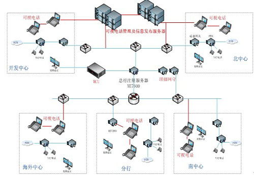 全行所有可視電話均通過數(shù)據中心(北京)新部署的可視電話管理及信息發(fā)布服務器進行配置、管理及信息展現(xiàn)。