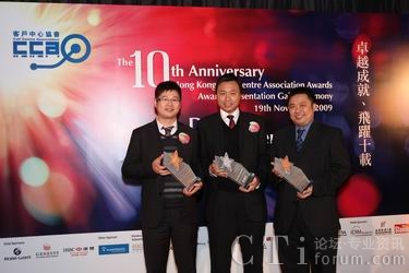 CTI論壇(ctiforum)11月20日消息(記者 張塵):11月19日晚,大中華區(qū)領(lǐng)先信息通訊技術(shù)服務(wù)商第一線安萊于2009年香港客戶中心大獎評選晚會中,再次囊括三項大獎:最佳外包客戶中心 (呼入)、最佳華南客戶中心 (100席以上) 及最佳離岸客戶中心。加上上個月由中國呼叫中心協(xié)會CNCCA授予的“2009中國(亞太)最佳外包呼叫中心”及全球IP通訊聯(lián)盟所頒發(fā)的“最佳外包呼叫中心供應(yīng)商(國內(nèi))”獎,第一線安萊在這個金秋時節(jié)可謂收獲頗豐。第一線安萊IP呼叫中心再次獲得業(yè)界的認同,這也體現(xiàn)了第一線安萊在該項產(chǎn)品及服務(wù)方面擁有領(lǐng)先的優(yōu)勢,通過持續(xù)進步,為客戶創(chuàng)造有利的營運模式,也有助于奠定企業(yè)服務(wù)的標準,再度奪獎乃實至名歸。