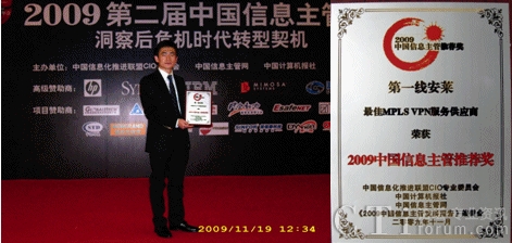 CTI論壇(ctiforum)11月25日消息(記者 張塵):2009年11月19日,2009年中國信息主管年會(huì)在北京世紀(jì)金源大飯店盛大召開,會(huì)議共吸引了各行業(yè)千名CIO線上與線下的參與。作為中國CIO云集的高峰會(huì)議,第一線安萊全程參與了本次大會(huì),從產(chǎn)品方案與展示等方面向業(yè)界展示了第一線安萊10年多來在MPLS VPN服務(wù)領(lǐng)域的最佳實(shí)踐經(jīng)驗(yàn)與卓越的市場領(lǐng)導(dǎo)地位,贏得了各與會(huì)嘉賓及CIO們的普遍認(rèn)同和稱贊。